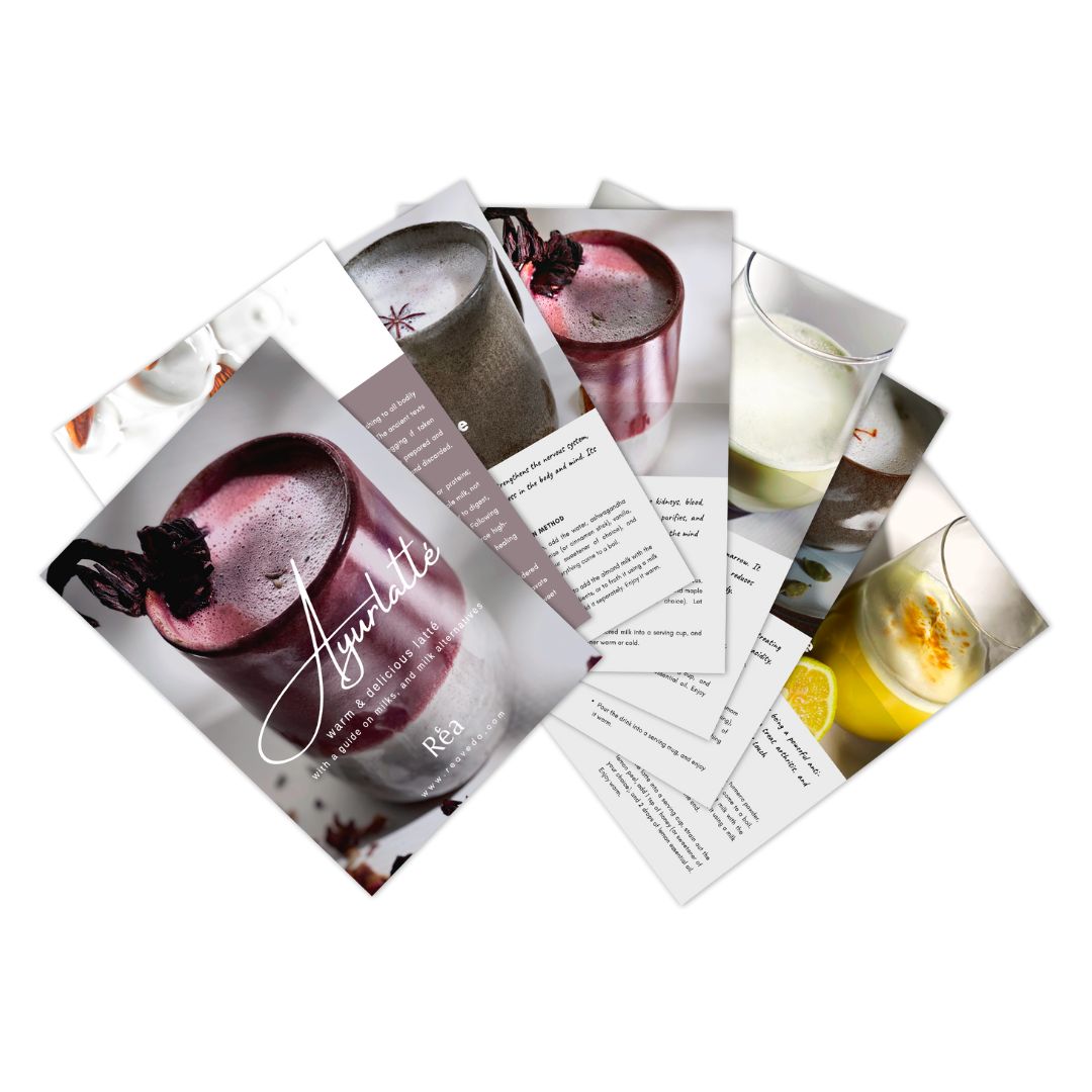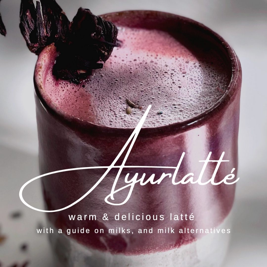 Five warm and delicious latté recipes, flavored with herbs, spices, and superfoods, plus a guide on the different types of milk and milk alternatives, their qualities, and benefits according to Ayurveda.